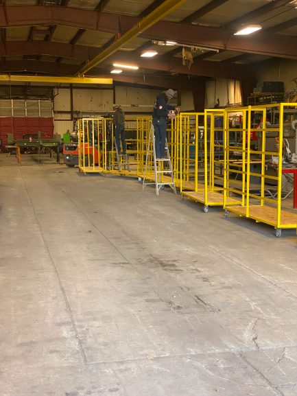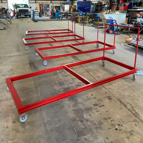 Providing quality steel products and excellent service is our focus here at Reid Fabricators Inc. We expertly fabricate parts for machinery and equipment, and we take pride in the level of quality we maintain. Recently, we completed work on a spiral staircase, a refurbished fan system, and a variety of racks and carts for warehouse storage. You can see photos of the work we completed on these projects down below. If you have any questions or need something similar fabricated for your operation, contact us today.